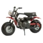 The black red stock minibike typically comes equipped with a small-displacement gasoline engine designed for ease of operation and durability.